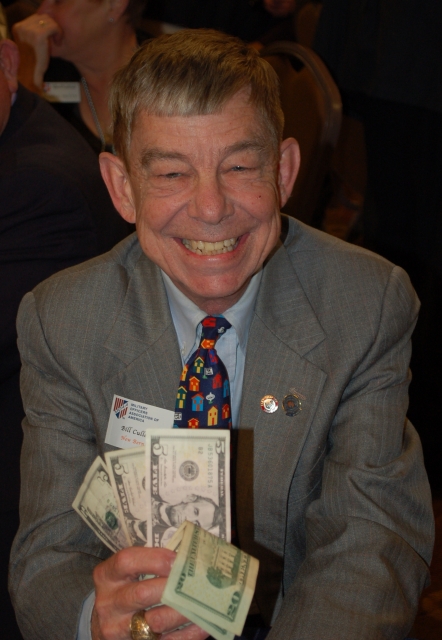 NC Council newsletter editor, Bill Culler, relishes his new found wealth after winning the 50/50 raffle.