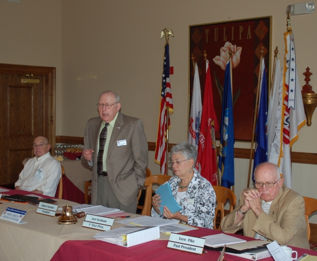 The 3rd Quarterly Meeting of the NC Council was opened by LTC Bob Garman, President in the Jefferson Room of the Jefferson Landing Club on August 10, 2013. Shown to Bob's right is LTC Chris Canipe from the Osborne-Piedmont Chapter. Seated to his left, COL Jeri Graham, Council 1st VP and Past President COL Vern Pike.