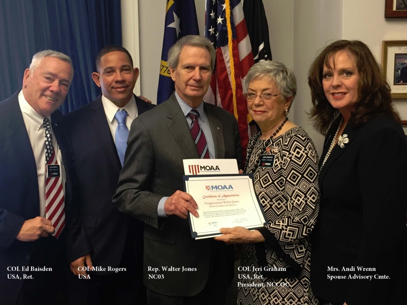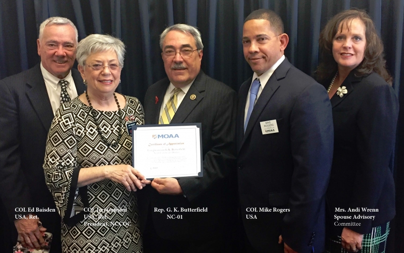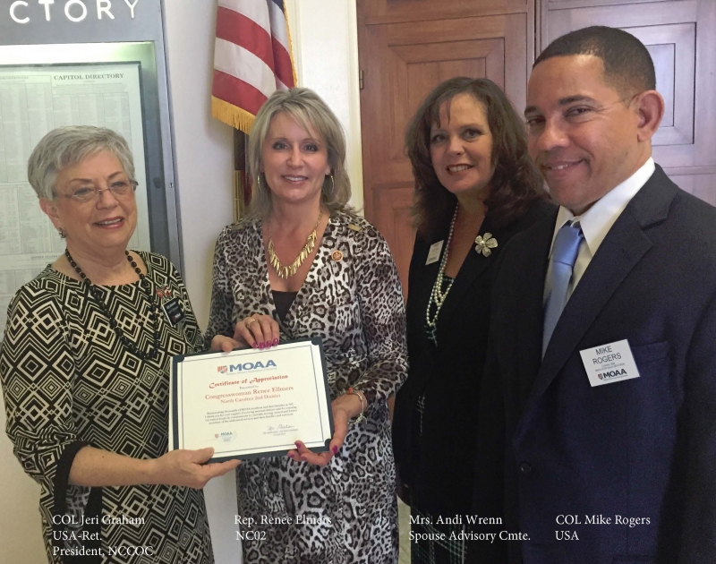 * The North Carolina Council of Chapters team consisted of COL Jeri Graham, USA, Ret., NCCOC President, COL Ed Baisden, USA, Ret., NCCOC Treasurer, COL Mike Rogers, USA, and Mrs. Andi Wrenn, MOAA Currently Serving Spouse Advisory Committee.