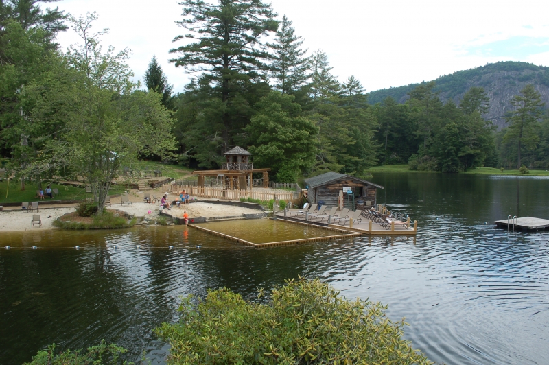 - Scroll over the thumbnail pictures to the right to see pictures of the beautiful High Hampton Inn surroundings - the main lodge, nearby Whitewater Falls, swimming area, golf course, cabins and the picturesque rock mountains to the east.